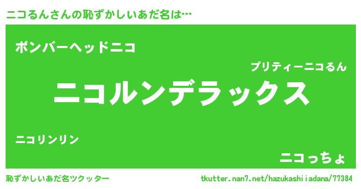 | 意味不明あだ名 | 『ニラ科ニコるん属』『自称ニコるん』 |