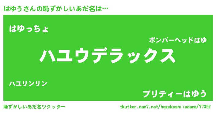 | 意味不明あだ名 | 『自称はゆう』『はゆうフォーエバー』 |