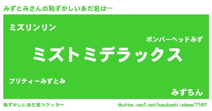 | 意味不明あだ名 | 『自称みずとみ』『永久保存みずとみ』 |