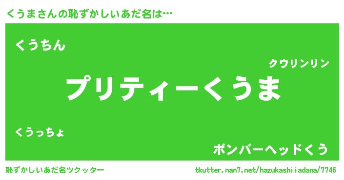| 胡散臭い通販商品みたいなあだ名 | 『モテモテ間違いなしブレスレット…その名も「くうま」』 |