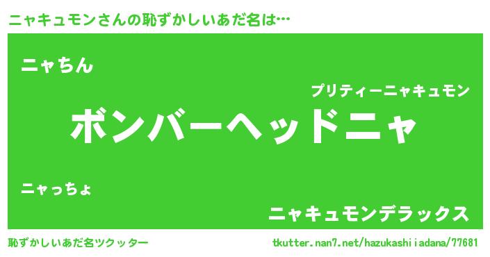 | 男性向けラノベタイトル風あだ名 | 『緋弾のニャキュモン』 |
