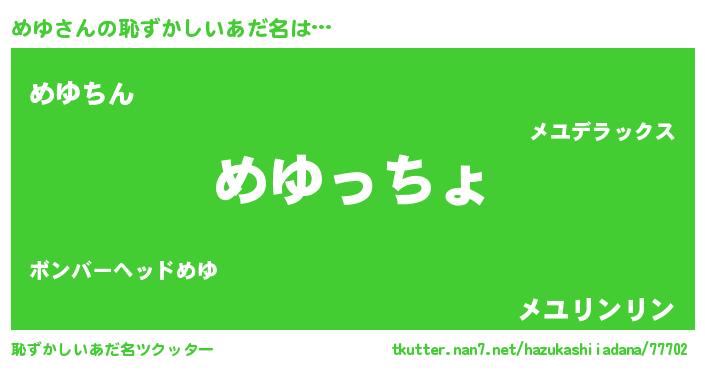 | ヒーロー風カッコイイあだ名 | 『仮面メユダー』『ウルトラめゆマン』 |