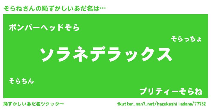 | ヒーロー風カッコイイあだ名 | 『最強戦士ソラネ』『愛の使者そらね』 |