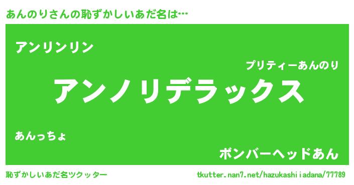 | 意味不明あだ名 | 『なめこ科あんのり属』『自称あんのり』 |