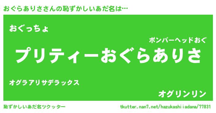 | 男性向けラノベタイトル風あだ名 | 『オグラアリサアートオンライン』 |