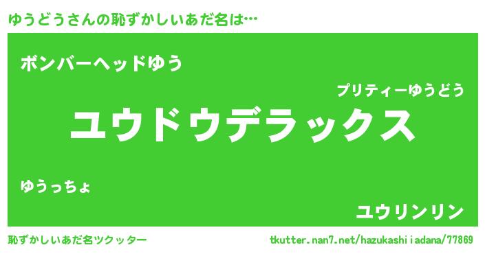 | ヒーロー風カッコイイあだ名 | 『最強戦士ユウドウ』『愛の使者ゆうどう』 |