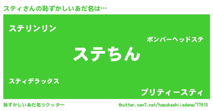 | 意味不明あだ名 | 『たけのこ科スティ属』『永久保存スティ』 |