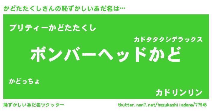 | ヒーロー風カッコイイあだ名 | 『仮面カドダー』『スーパーカドタタクシ』 |