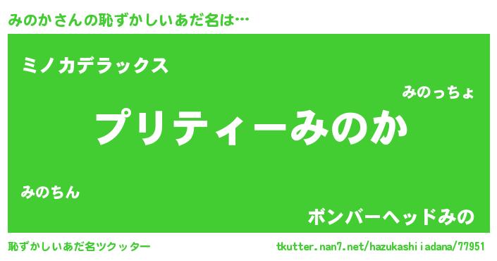 | 胡散臭い通販商品みたいなあだ名 | 『必ず成功するブレスレット…その名も「みのか」』 |