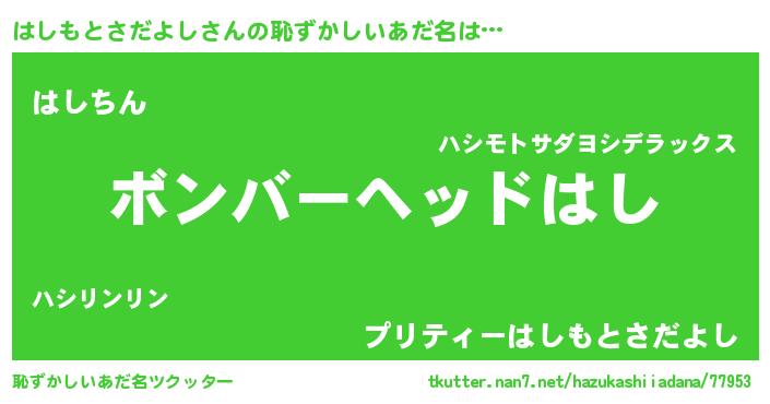 | ヘコむあだ名 | 『はしもとさだよし(遠い目)』『はしもー』 |
