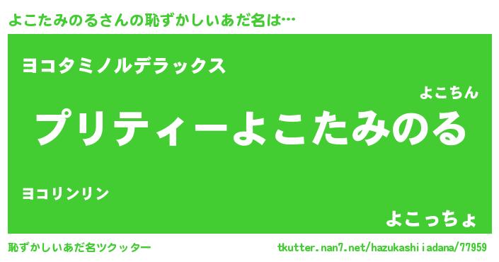 | 男性向けラノベタイトル風あだ名 | 『よこたみのるの憂鬱』 |