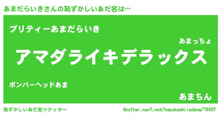 | 男性向けラノベタイトル風あだ名 | 『アマダライキスレイヤー』 |