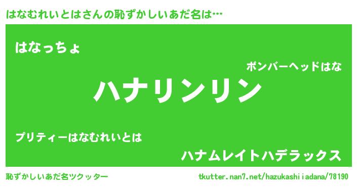 | ポケモン風あだ名 | 『ヒハナムレイトハ』『メロハッナ』 |