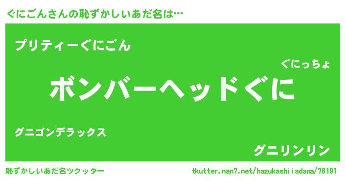 | ヒーロー風カッコイイあだ名 | 『愛の使者ぐにごん』『スーパーグニゴン』 |
