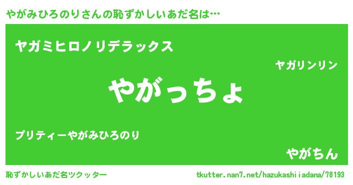 | ヘコむあだ名 | 『酢こんぶ』『やがみひろのり(笑)』 |
