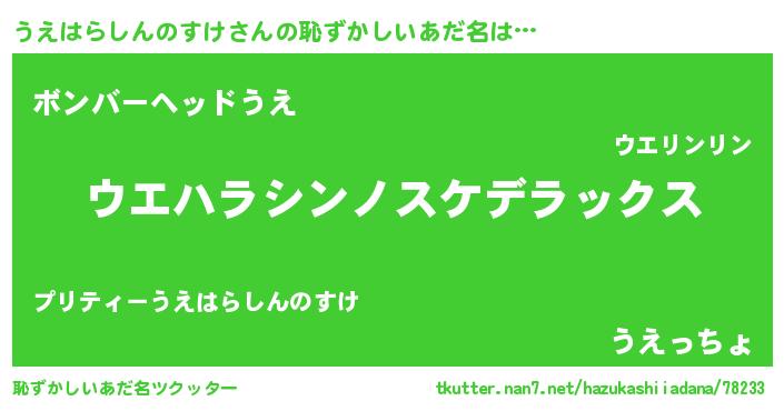 | 意味不明あだ名 | 『自称うえはらしんのすけ』 |