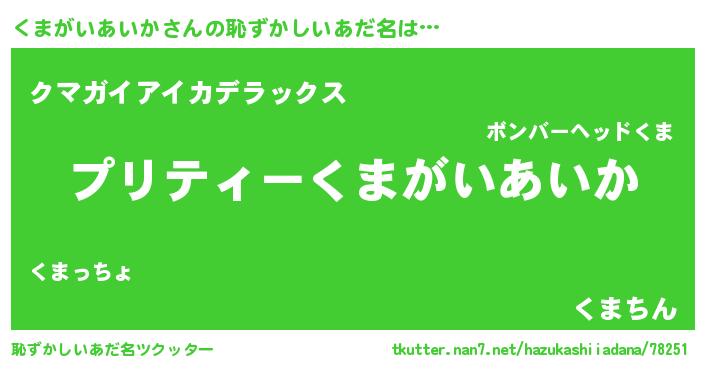 | ヒーロー風カッコイイあだ名 | 『スーパークマガイアイカ』 |