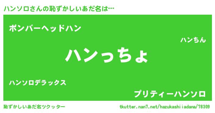 | 意味不明あだ名 | 『ハンソロフォーエバー』 |
