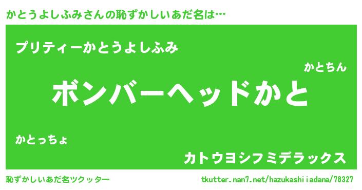 | ヘコむあだ名 | 『かとにゅー』『かとうよしふみ(爆)』 |