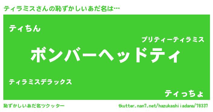 | 男性向けラノベタイトル風あだ名 | 『おまえをオタクにしてやるから、俺をティラミスにしてくれ! 』 |