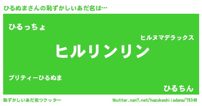| 女子向けラノベタイトル風あだ名 | 『ひるぬまは平凡を望む』 |