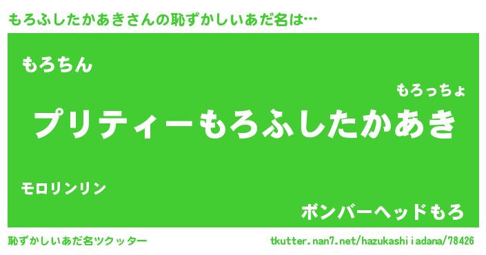 | ヘコむあだ名 | 『もろふぇ~』『もろふしたかあき(遠い目)』 |