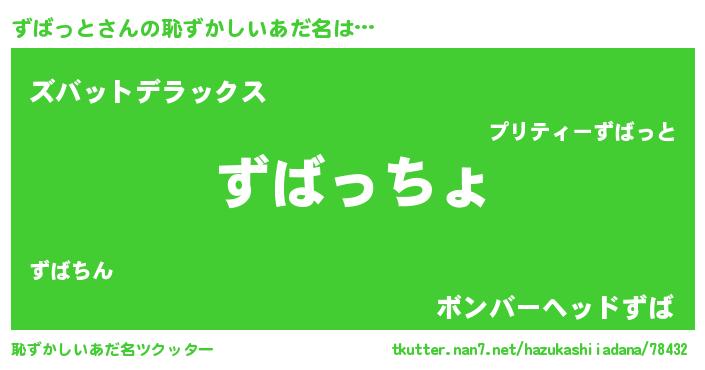 | 意味不明あだ名 | 『ずばっとフォーエバー』『自称ずばっと』 |