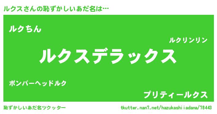 | 意味不明あだ名 | 『自称ルクス』『永久保存ルクス』 |