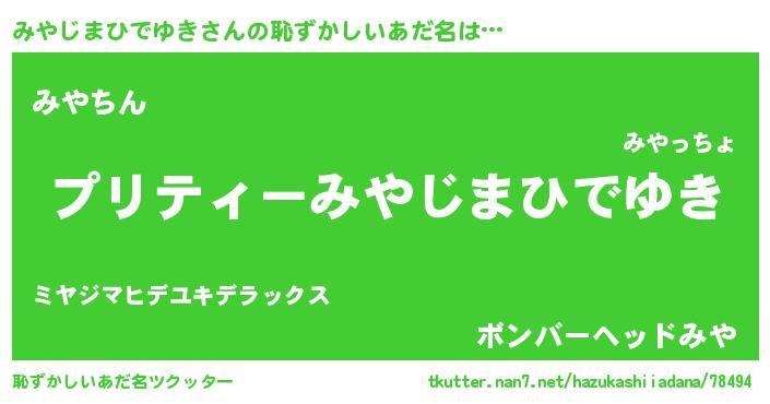 | ヒーロー風カッコイイあだ名 | 『仮面ミヤダー』『ネオミヤジマヒデユキ』 |