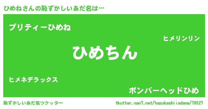 | 男性向けラノベタイトル風あだ名 | 『ひめねという概念が存在しない退屈な世界 』 |