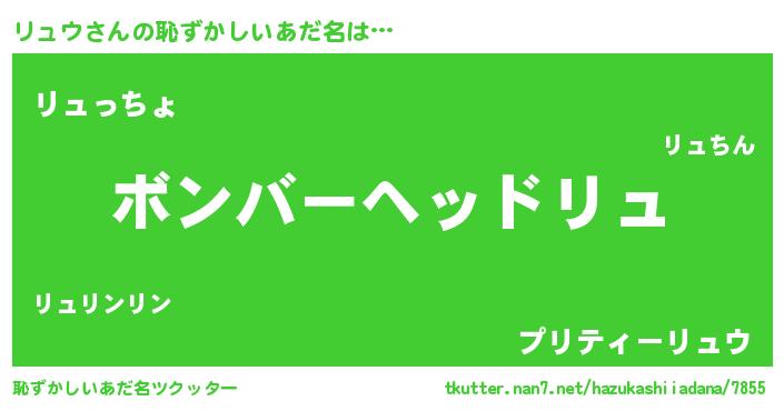 | 男性向けラノベタイトル風あだ名 | 『この素晴らしい世界にリュウを!』 |