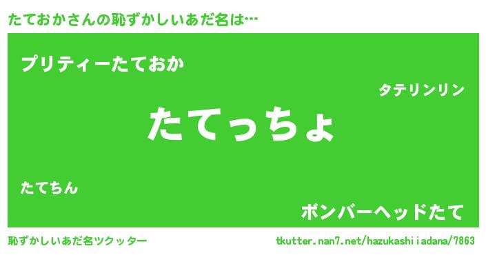 | 意味不明あだ名 | 『たておかフォーエバー』 |