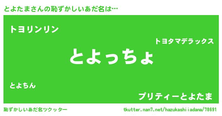 | 意味不明あだ名 | 『とよたまフォーエバー』『自称とよたま』 |