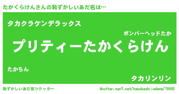 | 男性向けラノベタイトル風あだ名 | 『たかくらけんの憂鬱』 |