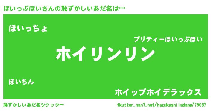 | 意味不明あだ名 | 『住所不定無職ほいっぷほい(6歳)』 |