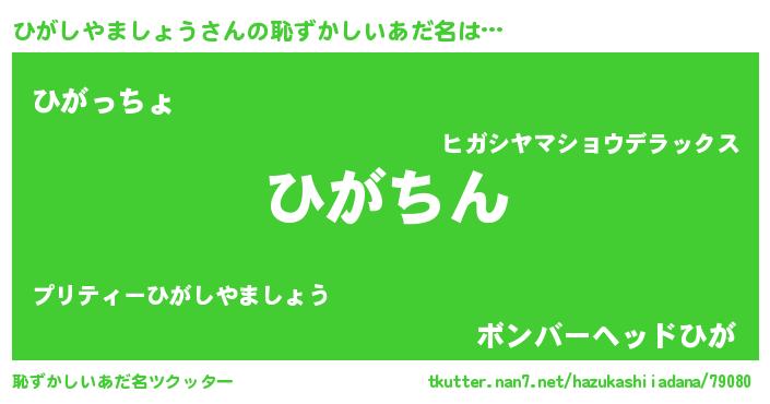 | 意味不明あだ名 | 『住所不定無職ひがしやましょう(1歳)』 |