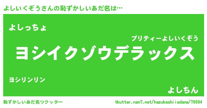 | 意味不明あだ名 | 『自称よしいくぞう』 |