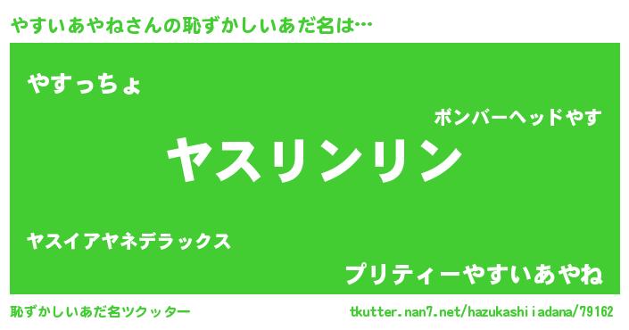 | ポケモン風あだ名 | 『ヤースイ』『ヒヤスイアヤネ』 |