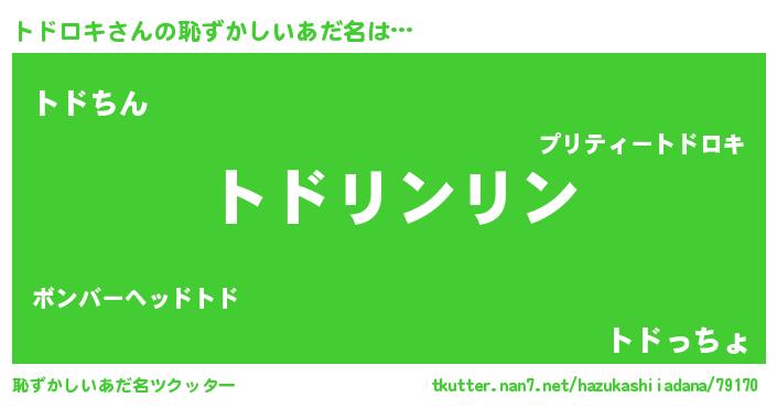 | 男性向けラノベタイトル風あだ名 | 『トドロキの嫁は女の子じゃないと思った?』 |
