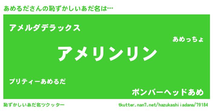 | 意味不明あだ名 | 『とにかく怪しいあめるだ』 |