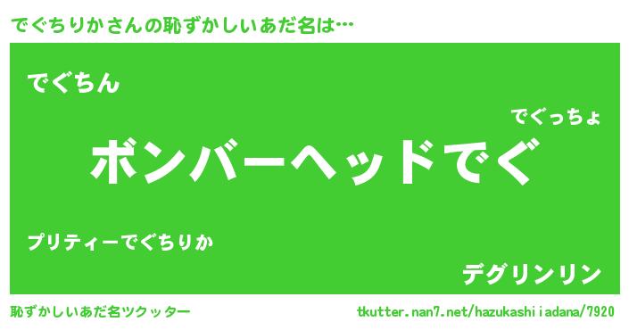 | ヒーロー風カッコイイあだ名 | 『天空の使者でぐちりか』『黄金騎士デグ』 |