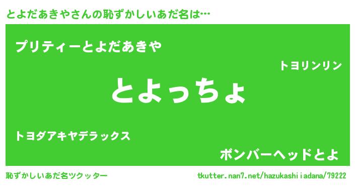 | ファンタジー風あだ名 | 『エターナルトヨダアキヤー』 |