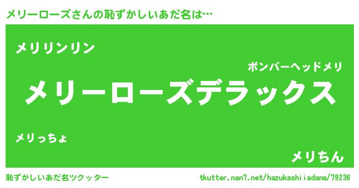 | ヘコむあだ名 | 『メリっ子』『メリーローズ(笑)』 |