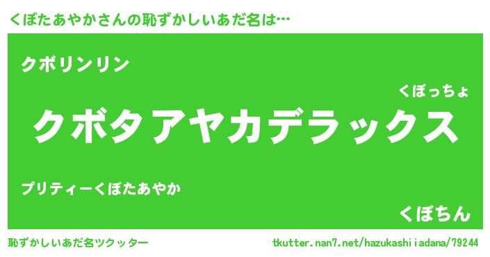 | 男性向けラノベタイトル風あだ名 | 『Re:くぼたあやかから始める異世界生活』 |