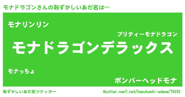 | ヒーロー風カッコイイあだ名 | 『最強戦士モナドラゴン』『炎刃騎士モナ』 |