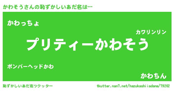 | ヒーロー風カッコイイあだ名 | 『スーパーカワソウ』『ネオカワソウ』 |