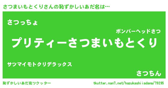 | 男性向けラノベタイトル風あだ名 | 『サツマイモトクリスレイヤー』 |