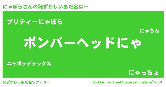 | 欧米人風あだ名 | 『にゃぽら・ステッグマイヤー』 |