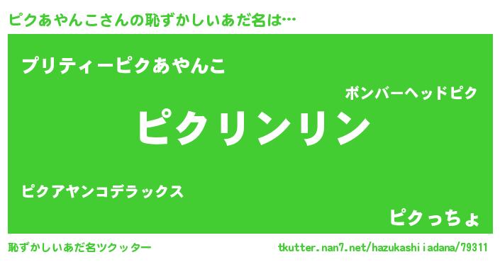 | 意味不明あだ名 | 『とにかく怪しいピクあやんこ』 |