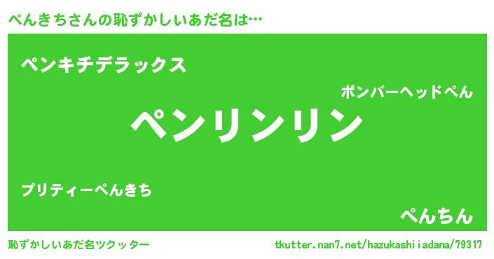 | 意味不明あだ名 | 『とにかく怪しいぺんきち』 |